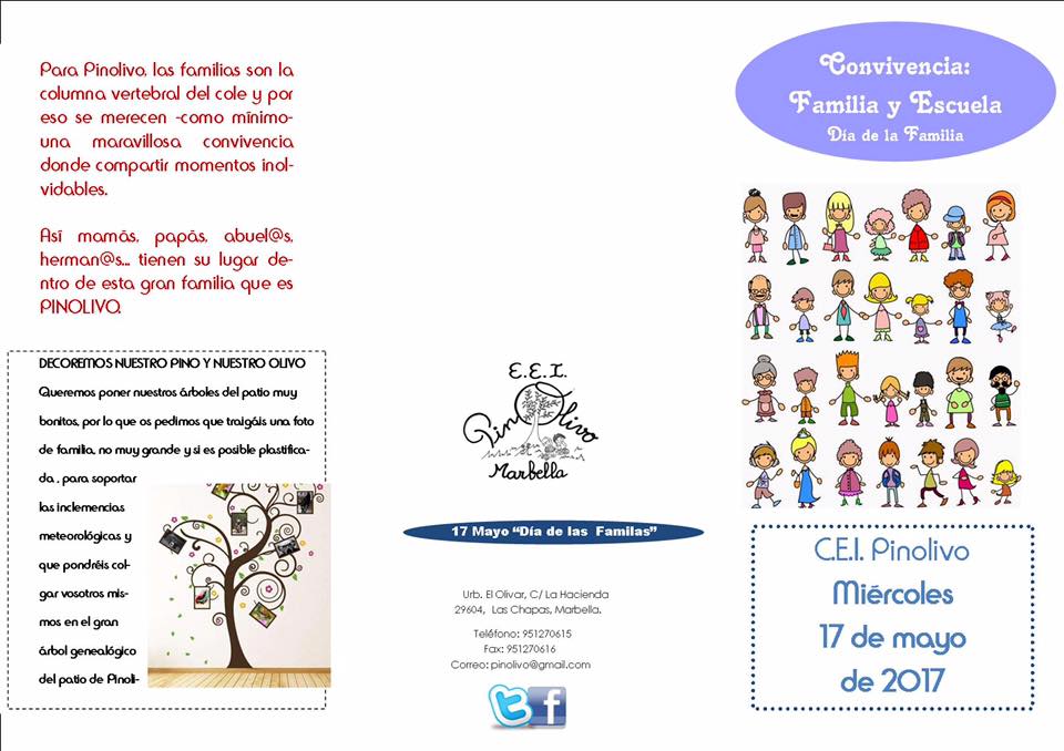 El 17 de mayo celebramos el día de las familias en Pinolivo y lo queremos hacer a lo grande. Para nosotros y para nosotras, las familias son la columna vertebral del cole y por eso se merecen una maravillosa convivencia donde compartir momentos inolvidables. Habrá juegos, risas, música…