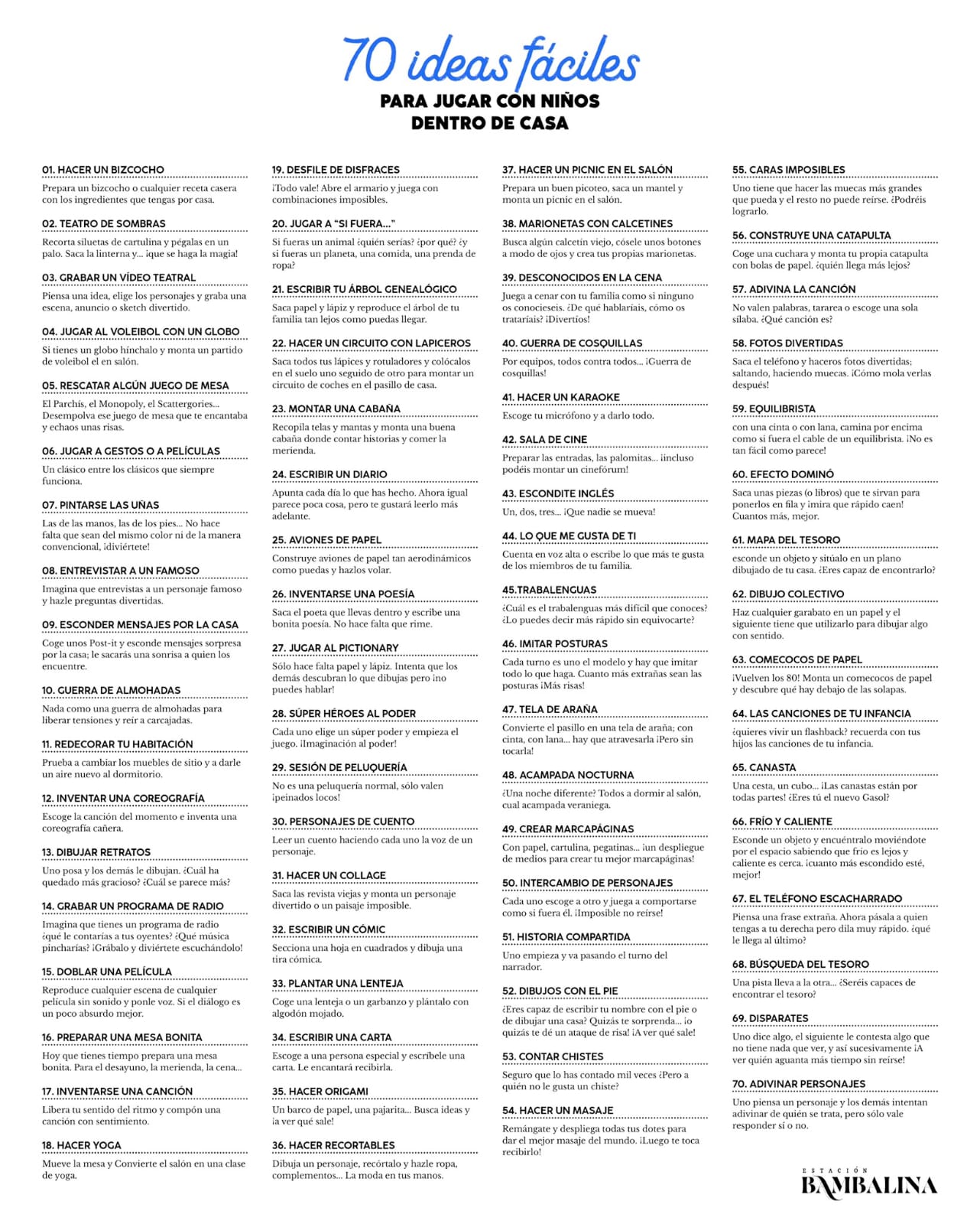 Ideas para hacer en casa y en familia en estos días sin cole.